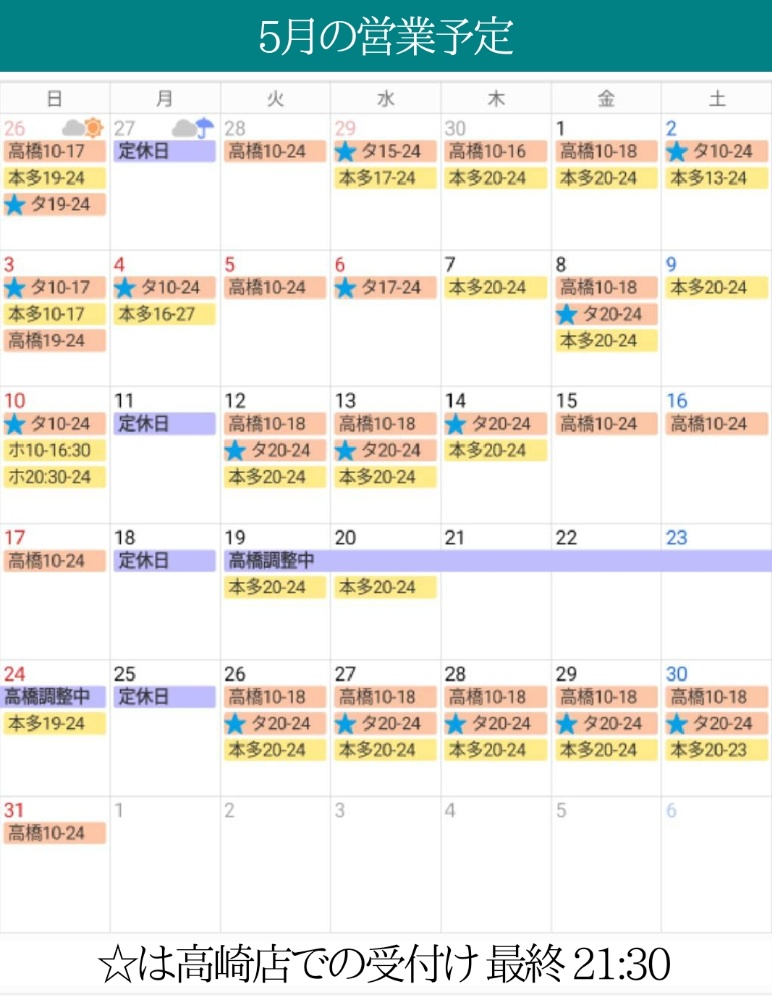 | 定休日 | 月曜定休・不定休。月曜祝日の場合は翌日振替え |