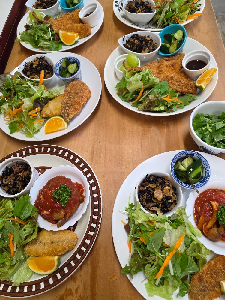 鯵フライと煮込みハンバーグでした(^q^)