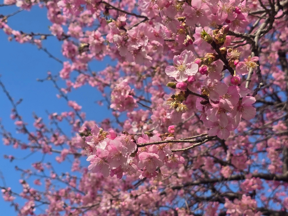 こんばんは! 本多です。週末はありがとうございました♡またお待ちしております!今年も大好きな桜の時期がやってきました!!🌸青空に、ピンクの桜元気になるカラーです。桜が散る頃まで、忙しくなるぞ~(リリーさん風)どうぞお付き合いください。今日は、伊勢崎市みらい公園の河津桜です🌸