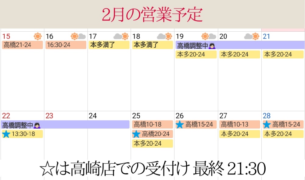 | 住所 | 埼玉県本庄市今井 群馬県高崎市上小鳥町 ご予約確定の後、詳細お伝えします |