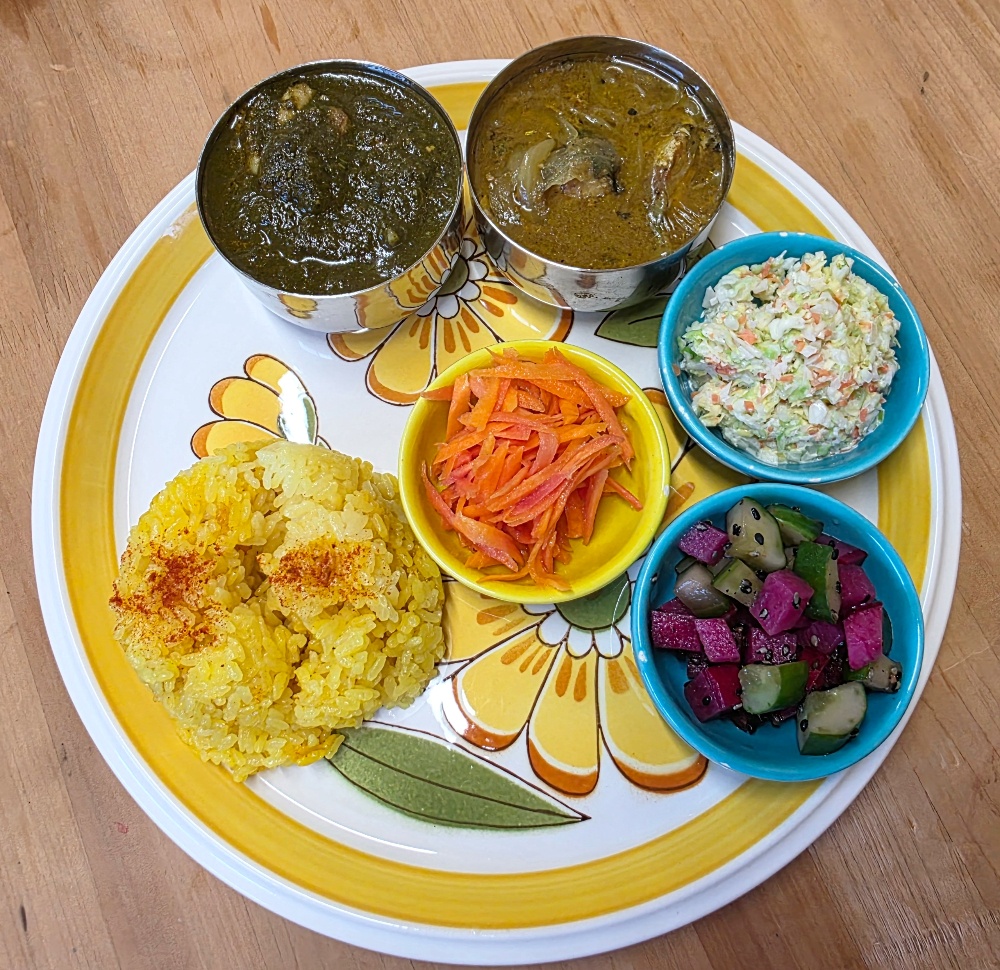 副菜は、皆様にも食べていただきたい自信作のコールスローと他。