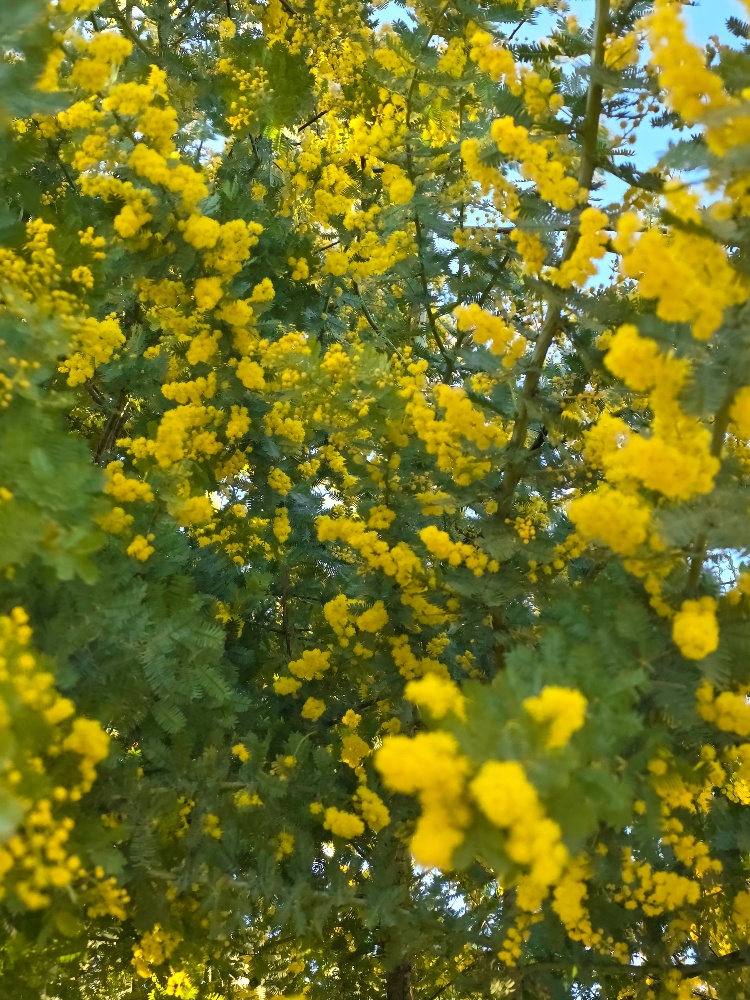 強風の中、私が代わりに高枝切りバサミでミモザの木を刈るという荒業に出た。