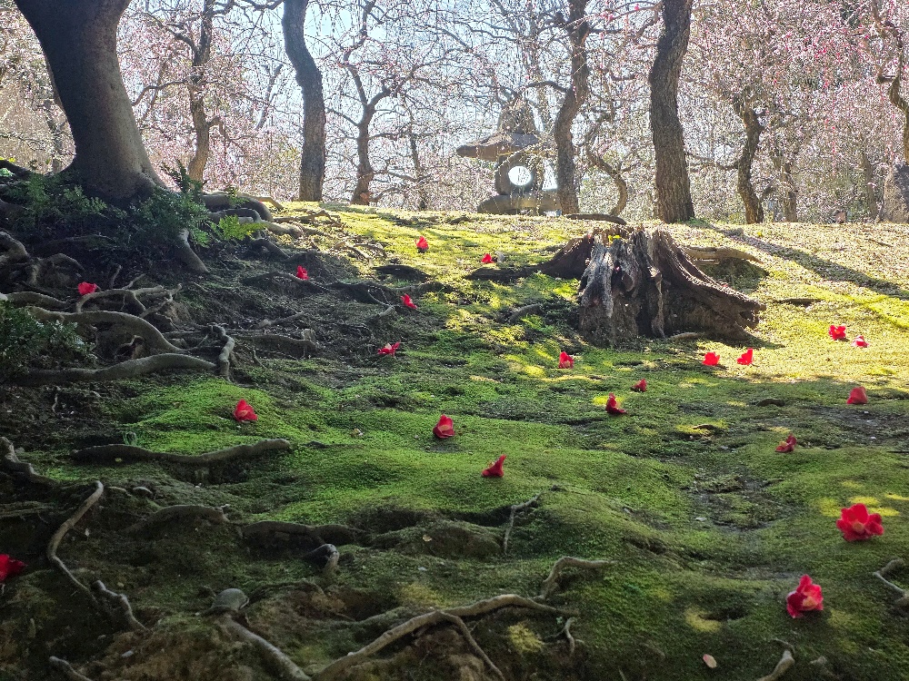 枝垂れ梅と落ち椿を見に行ってきました。
