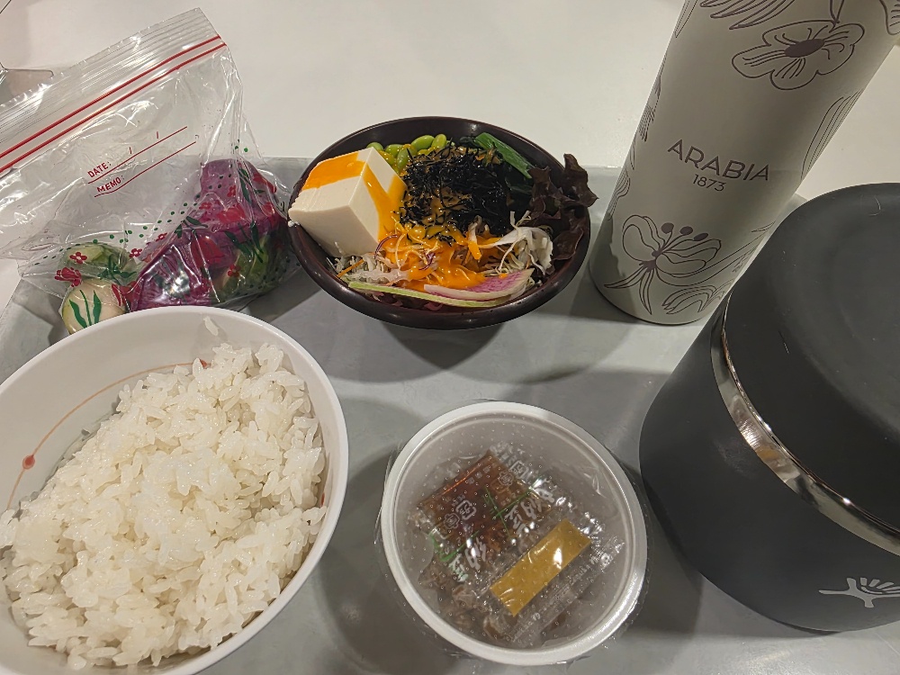 こんばんは! 本多です。大阪滞在3日目。いつも大阪には、自動調理ポットを持参しお昼用にスープを作ります。(毎回外食したくないので)チェックインをしたら、近所のスーパーに行きスープの食材と納豆を買いに行くのがルーティン。お昼は、職場の食堂で白ご飯とサラダを購入。かなり節約ランチとなります(笑)今回は、自宅からぬか漬けも持参。漬物あると落ち着く!(^q^)あと3日。がんばります!!皆さまも素敵な週末を♡